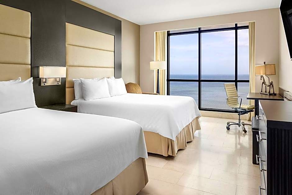 These rooms offer en-suite amenities like flat-screen cable TV, iPod docking station, coffee maker and a mini-bar. The telephone lines have voice mail service. Bathrobes and hairdryers are available in the private bathroom. These rooms may overlook the ocean or the city skyline.